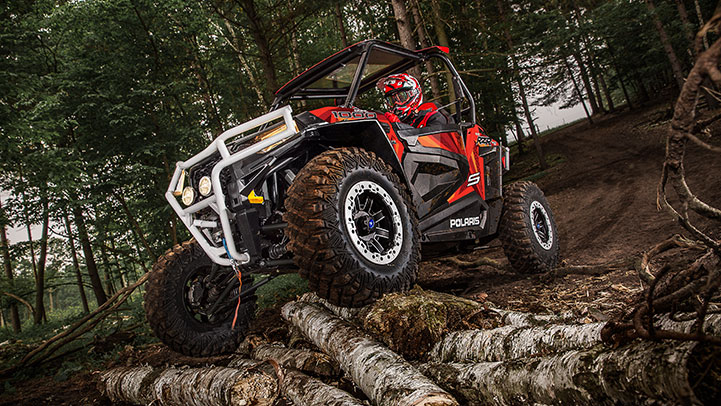 The RZR S 570 EPS is a new entry into the Polaris Sport category. Starting at $13,000, the 570 engine features 4 valves and a dual overhead cam design. The front and rear dual A-Arm suspension system with a rear stabilizer bar creates a stable 60-inch stance for performance on the trail that can handle anything. Power steering, of course, along with customizable features such as high-tech audio and storage. Add an in-helmet headset for instance, and LED light bars.