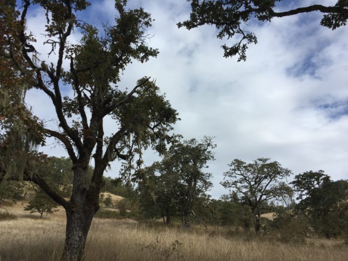 Our group walked around to learn how the trees grow. We learned that Douglas firs and other fast-growing trees compete with oaks for light, and if an oak doesn’t get enough sun over time it will die. Knowing what trees you might need to remove can help you manage oak trees if you want to make sure that the trees in your area stay healthy and keep producing. We also learned that oaks have some years where they just don’t produce much, and some years, called “mast” years, where the nuts are abundant.